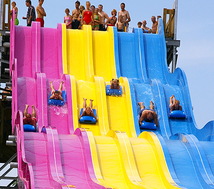 水滑梯長期以來是水上樂園設(shè)備的主角,可分為大型水滑梯和兒童滑梯兩大類。從游玩功能分類,大型水滑梯游客分為驚險水滑梯(高速刺激類滑梯)和組團家庭滑梯(2/4/5/6人皮筏類)。[查看詳情]