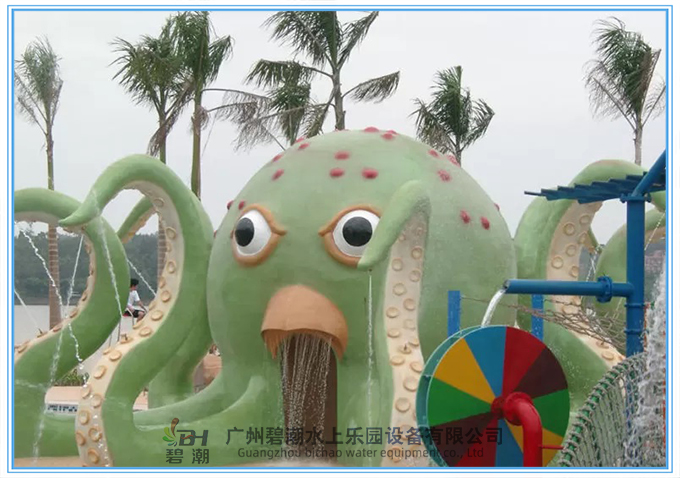 水上樂園設備兒童戲水設備-八爪章魚屋是廣州碧潮水上樂園設備有限公司根據(jù)章魚形象設計而成,此款設備栩栩如生,色彩鮮明,具有強烈的視覺沖擊力。對孩童非常具有吸引力。