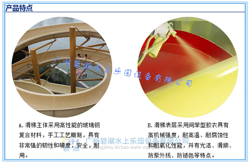 B.滑梯表層采用間苯型膠衣具有高機(jī)械強(qiáng)度,耐高溫、耐腐蝕性和耐氧化性能,并有光潔、滑順、防紫外線、防褪色等特點(diǎn)。